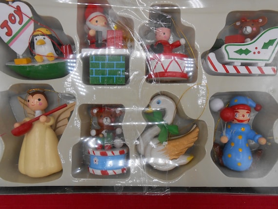 Eight New Vintage Hand Painted Wooden Christmas Ornaments Etsy